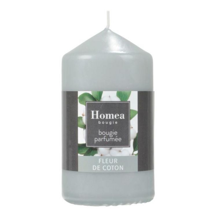 Informations Techniques : Dimensions : D. 6 x H. 11 cm Matière : Paraffine Spécificités : Tendance & Pratique Bougie pilier parfumée Senteur : Fleur de coton Type de fragrance : Florale Forme ronde Poids : 0,21 kg Couleur : Gris