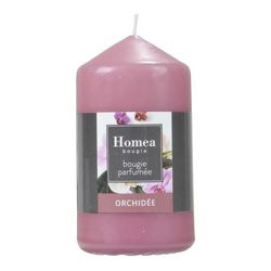 Informations Techniques : Dimensions : D. 6 x H. 11 cm Matière : Paraffine Spécificités : Tendance & Pratique Bougie pilier parfumée Senteur : Orchidée Type de fragrance : Florale Forme ronde Poids : 0,21 kg Couleur : Rose