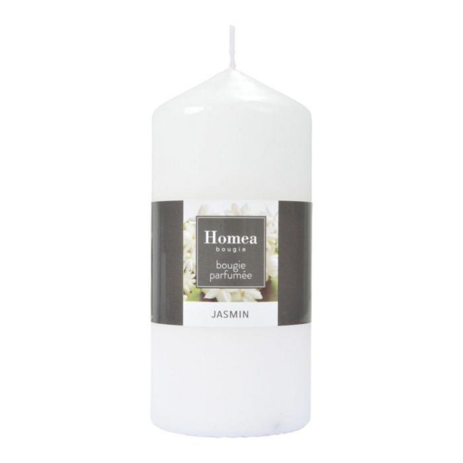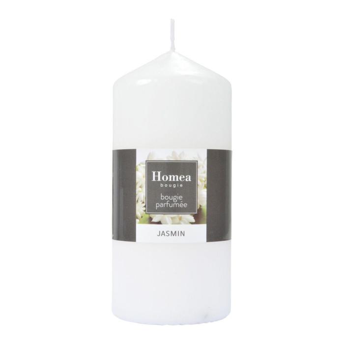 Informations Techniques : Dimensions : D. 7 x H. 15 cm Matière : Paraffine Spécificités : Tendance & Pratique Bougie pilier parfumée Senteur : Jasmin Type de fragrance : Florale Forme ronde Poids : 0,44 kg Couleur : Blanc