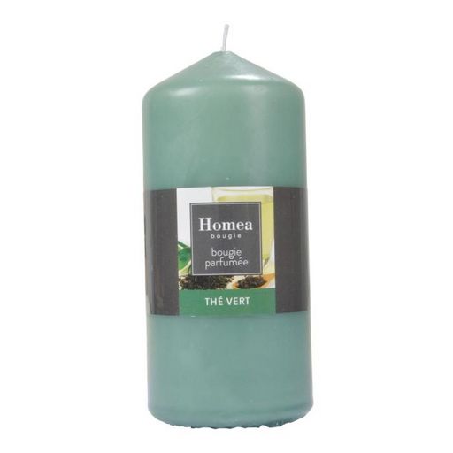 Informations Techniques : Dimensions : D. 7 x H. 15 cm Matière : Paraffine Spécificités : Tendance & Pratique Bougie pilier parfumée Senteur : Thé Vert Type de fragrance : Végétal Forme ronde Poids : 0,44 kg Couleur : Vert