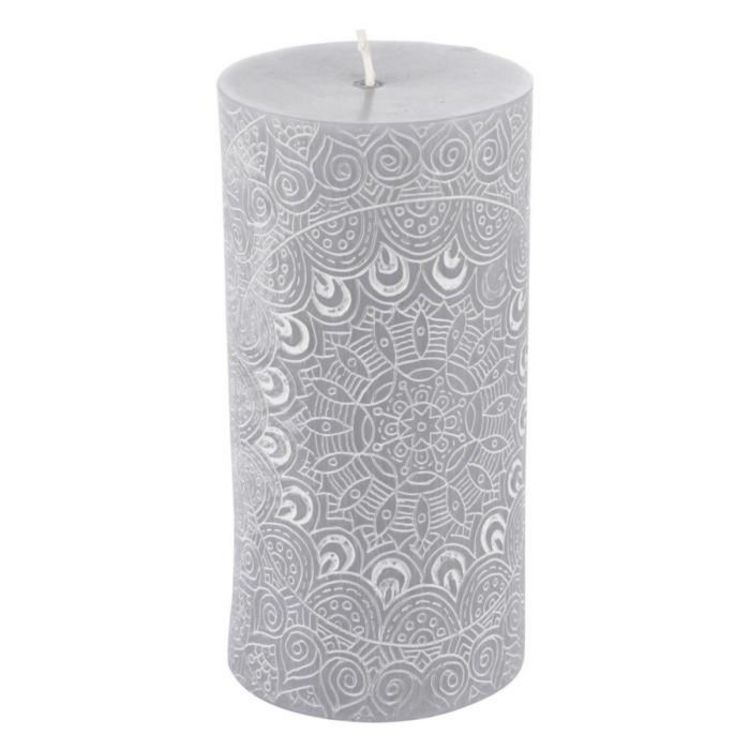 Bougie Pilier Mandala Graphic Ethnic 14cm Gris Clair