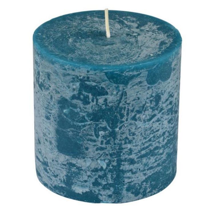 Bougie Pilier Ronde Déco Rustique 10cm Bleu Paon
