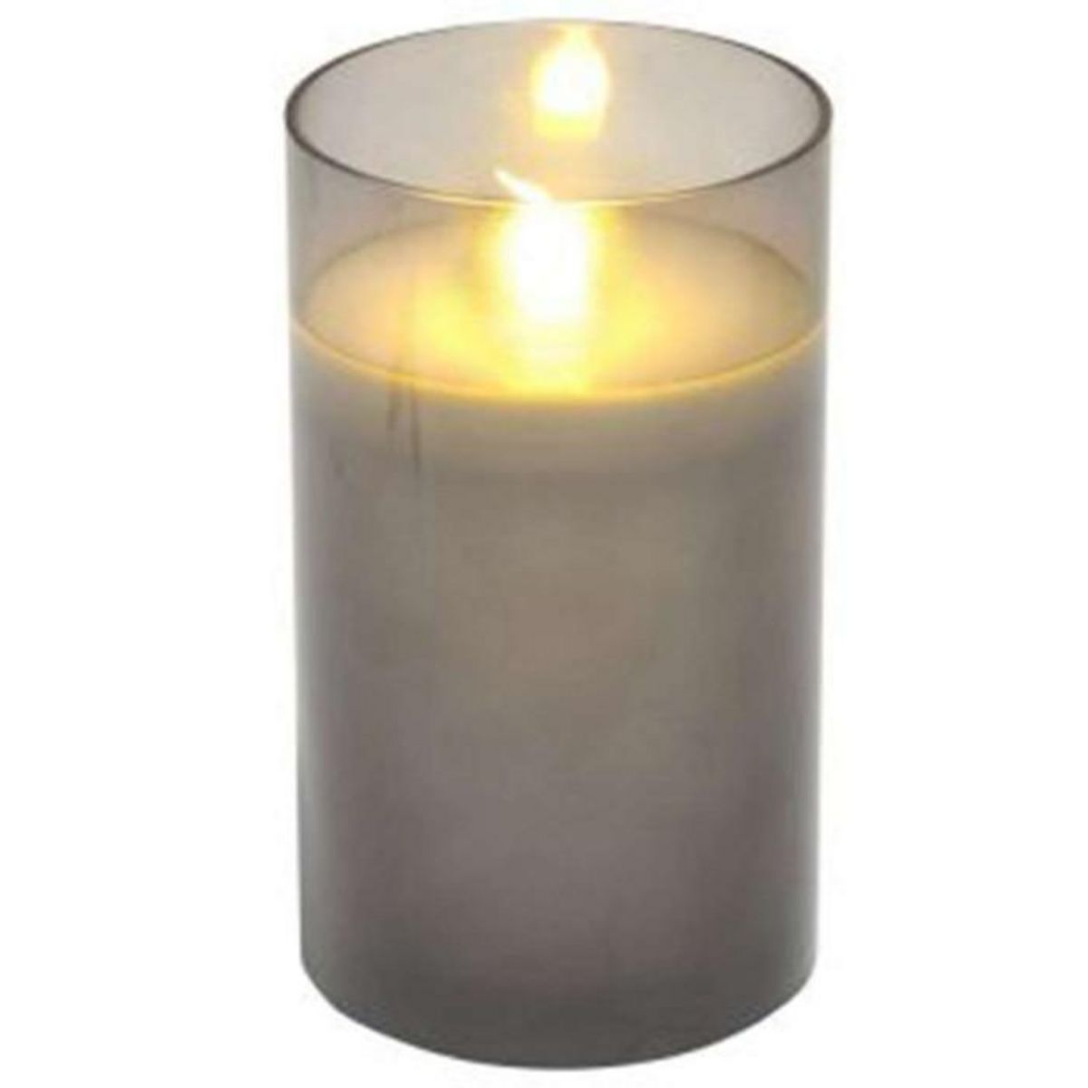 Bougie Ronde LED Verrine 12cm Gris Clair