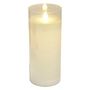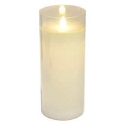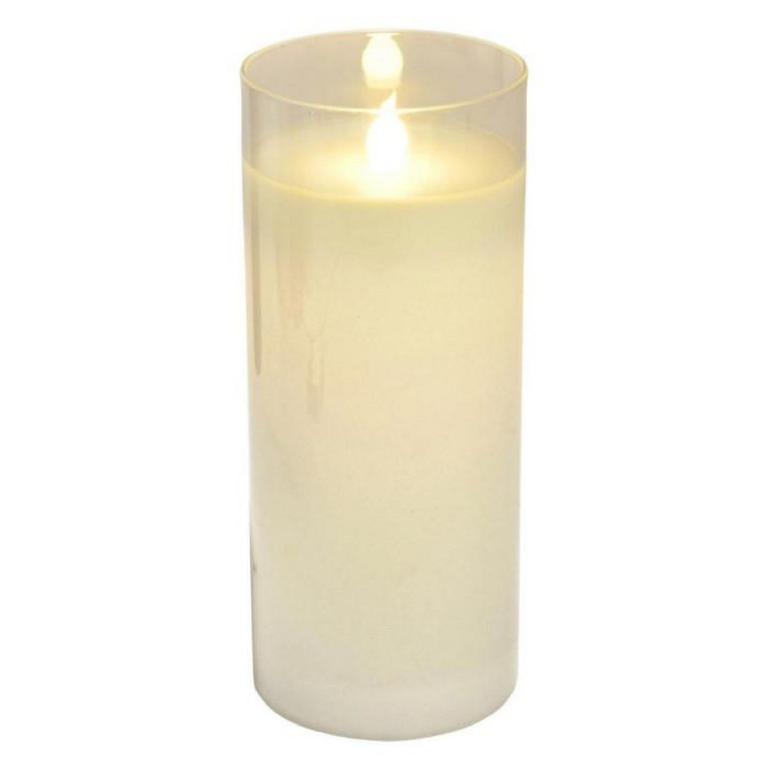Informations Techniques : Dimensions : D. 7.5 x H. 17.5 cm Matière : Verre Spécificités : Pratique & Design Bougie LED Cire blanche Lumière blanche chaude Facile d'utilisation Fonctionne à pile Poids : 0.32 kg Couleur : Blanc