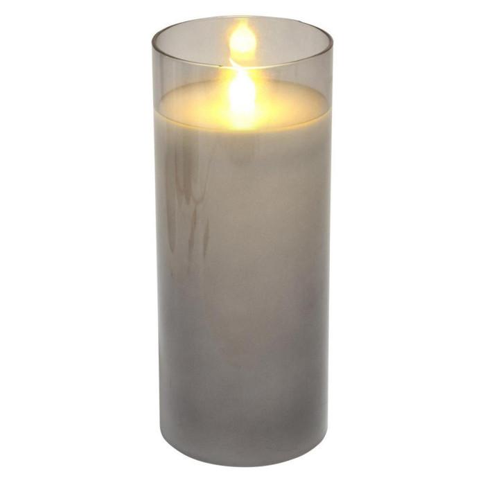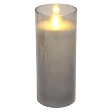 Bougie Ronde LED Verrine 17cm Gris Clair