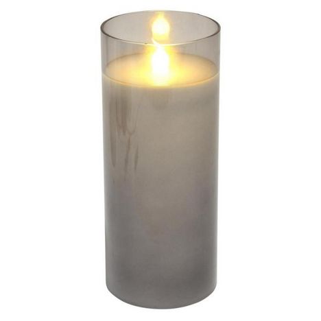 Informations Techniques : Dimensions : D. 7.5 x H. 17.5 cm Matière : Verre Spécificités : Pratique & Design Bougie LED Cire blanche Lumière blanche chaude Facile d'utilisation Fonctionne à pile Poids : 0.32 kg Couleur : Gris Clair