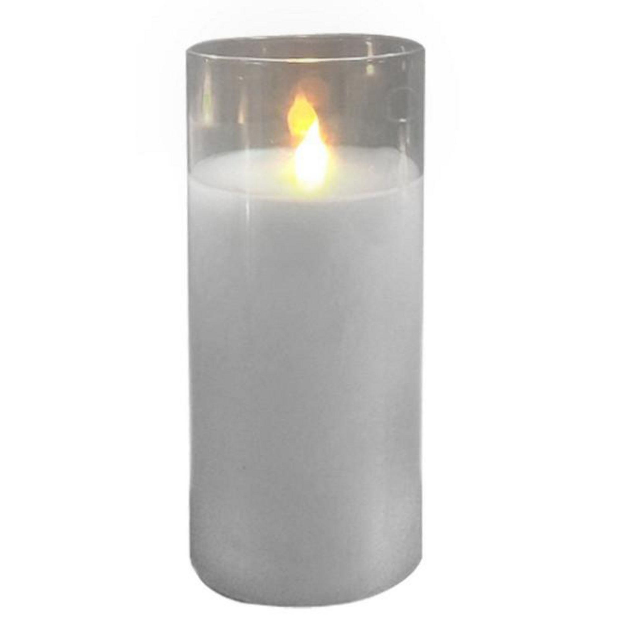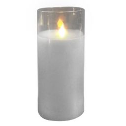 Informations Techniques : Dimensions : D. 7.5 x H. 20 cm Matière : Verre Spécificités : Pratique & Design Bougie LED Cire blanche Lumière blanche chaude Facile d'utilisation Fonctionne à pile Poids : 0.35 kg Couleur : Gris Clair