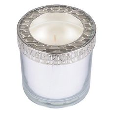 Informations Techniques : Dimensions : D. 10 x H. 10 cm Matières : Cire & Verre Spécificités : Pratique & Design Bougie Parfumée Verrine Avec Capuchon Effet Dentelle Senteur : Ambre Couleur : Argent