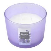 Informations Techniques : Dimensions : D. 11 x H. 8 cm Matière : Paraffine Spécificités : Déco & Pratique Bougie parfumée Avec 3 mèches Design verrine Senteur : Lavande Type de fragrance : Florale Forme ronde Poids : 0,24 kg Couleur : Violet