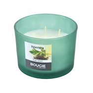Informations Techniques : Dimensions : D. 11 x H. 8 cm Matière : Paraffine Spécificités : Déco & Pratique Bougie parfumée Avec 3 mèches Design verrine Senteur : Thé vert Type de fragrance : Végétale Forme ronde Poids : 0,24 kg Couleur : Vert