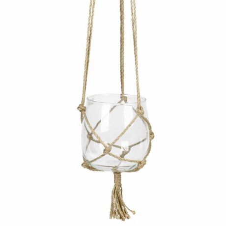 Boule en Verre Suspendue Chanvre 15cm Transparent & Naturel