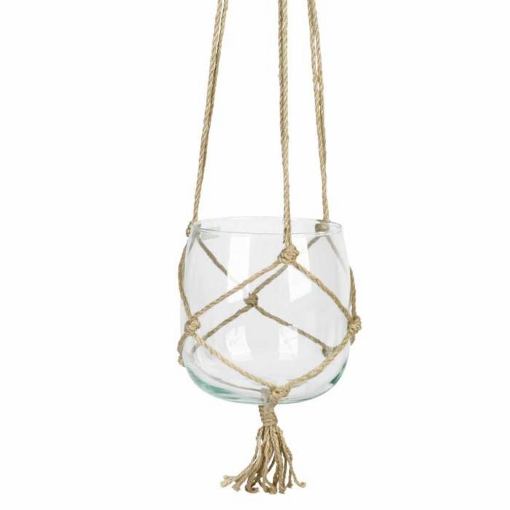 Boule en Verre Suspendue Chanvre 18cm Transparent & Naturel