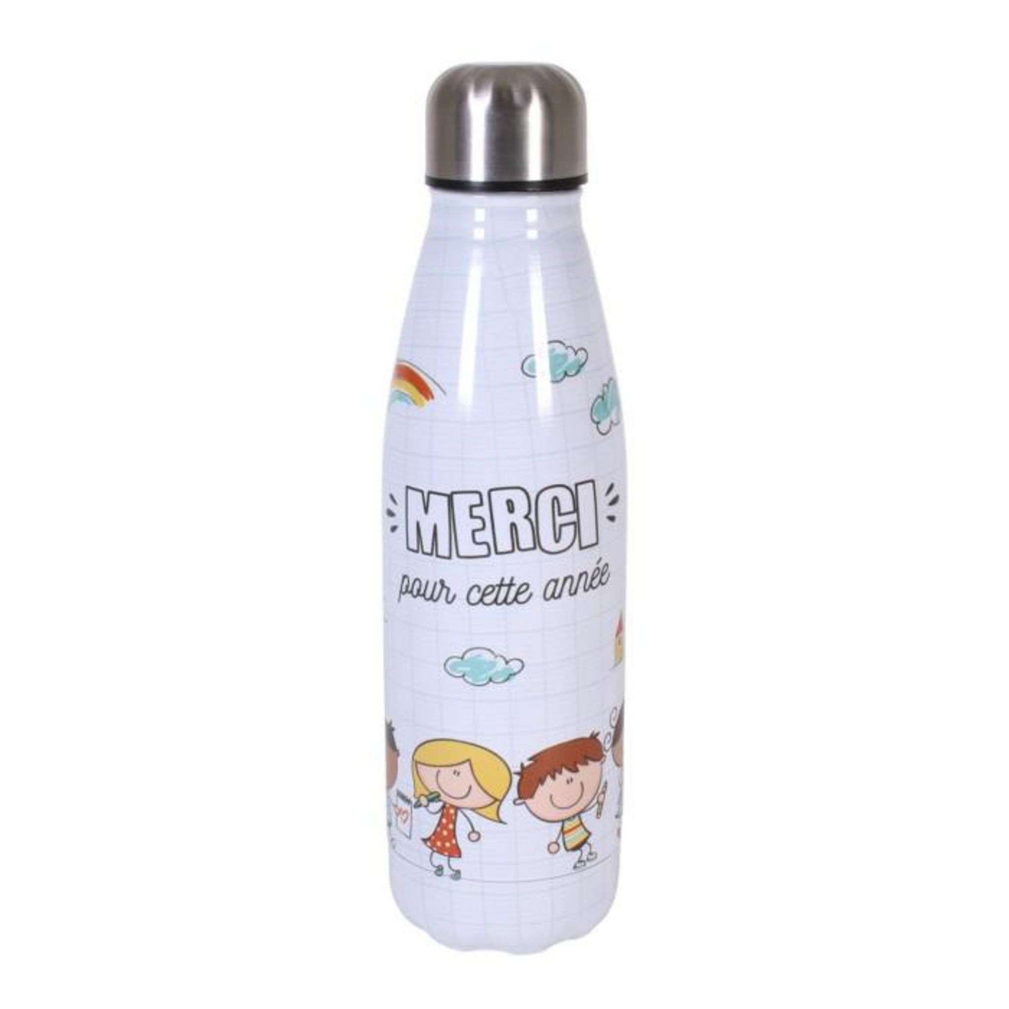 Informations Techniques : Dimensions : D. 7 x H. 25,8 cm Matière : Acier Inoxydable Spécificités : Pratique & Utile Bouteille réutilisable Imprimé enfantin Avec inscription Forme ronde Contenance : 50 cl Poids : 0,29 kg Couleur : Blanc