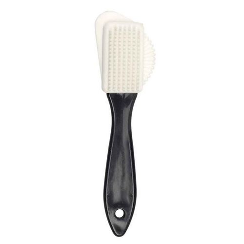 Informations Techniques : Dimensions : L. 15,5 x l. 4 x H. 3 cm Matières : Polyéthylène, TPR, Métal & Cuivre Spécificités : Pratique & Utile Brosse de Nettoyage Pour Chaussures Forme Arrondie Poils en Laiton & Nylon pour enlever les Saletés, les Tâchs & les Éraflures Picots Souples en Caoutchouc idé