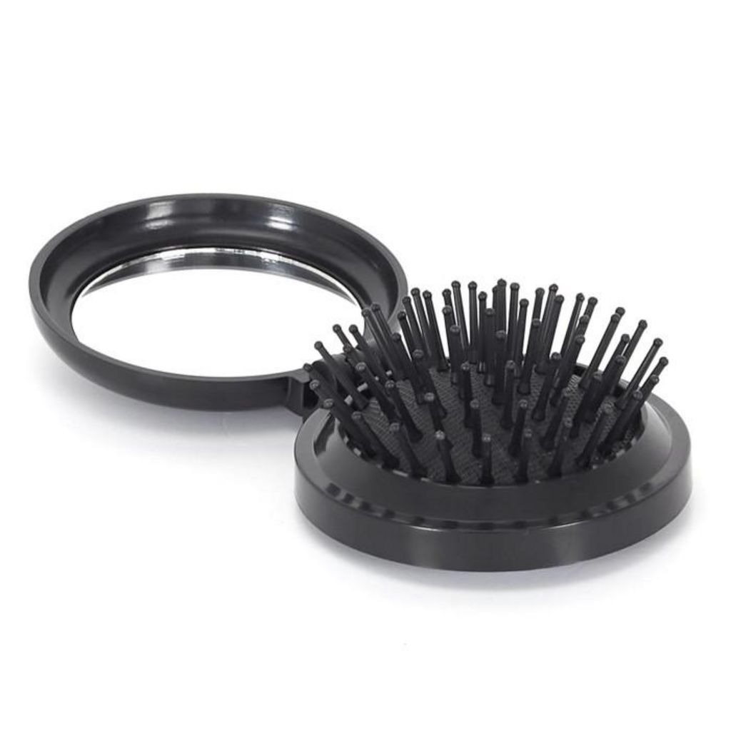 Brosse & Miroir de Sac Nomade 7cm Noir