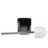 Informations Techniques : Dimensions : D. 10,6 x H. 40 cm Produit Packagé : L. 11 x l. 11 x H. 40 cm Matière : Céramique Spécificités : Design & Fonctionnel Brosse WC design Forme Ronde Imprimé Couleur : Noir & Argent
