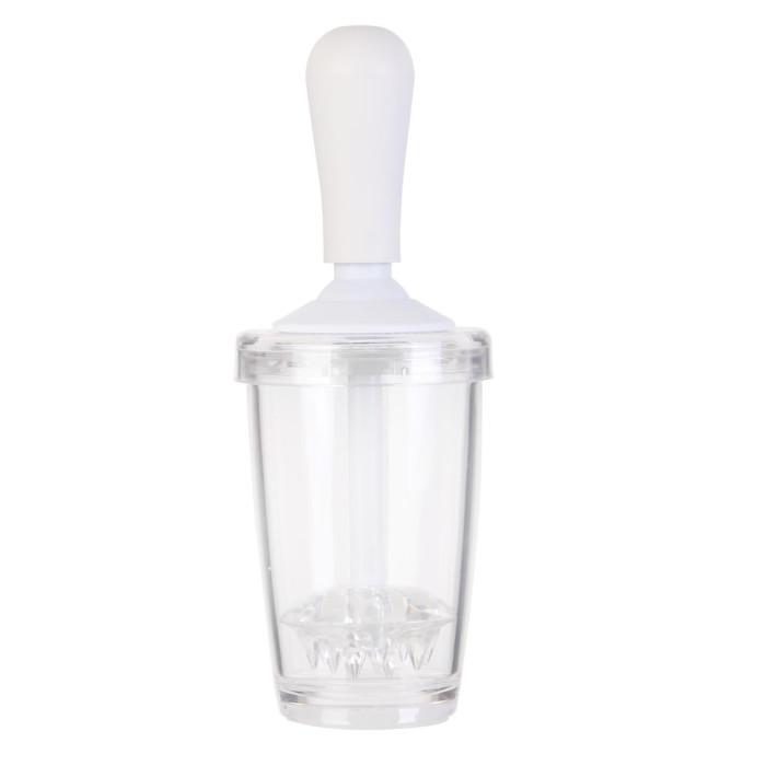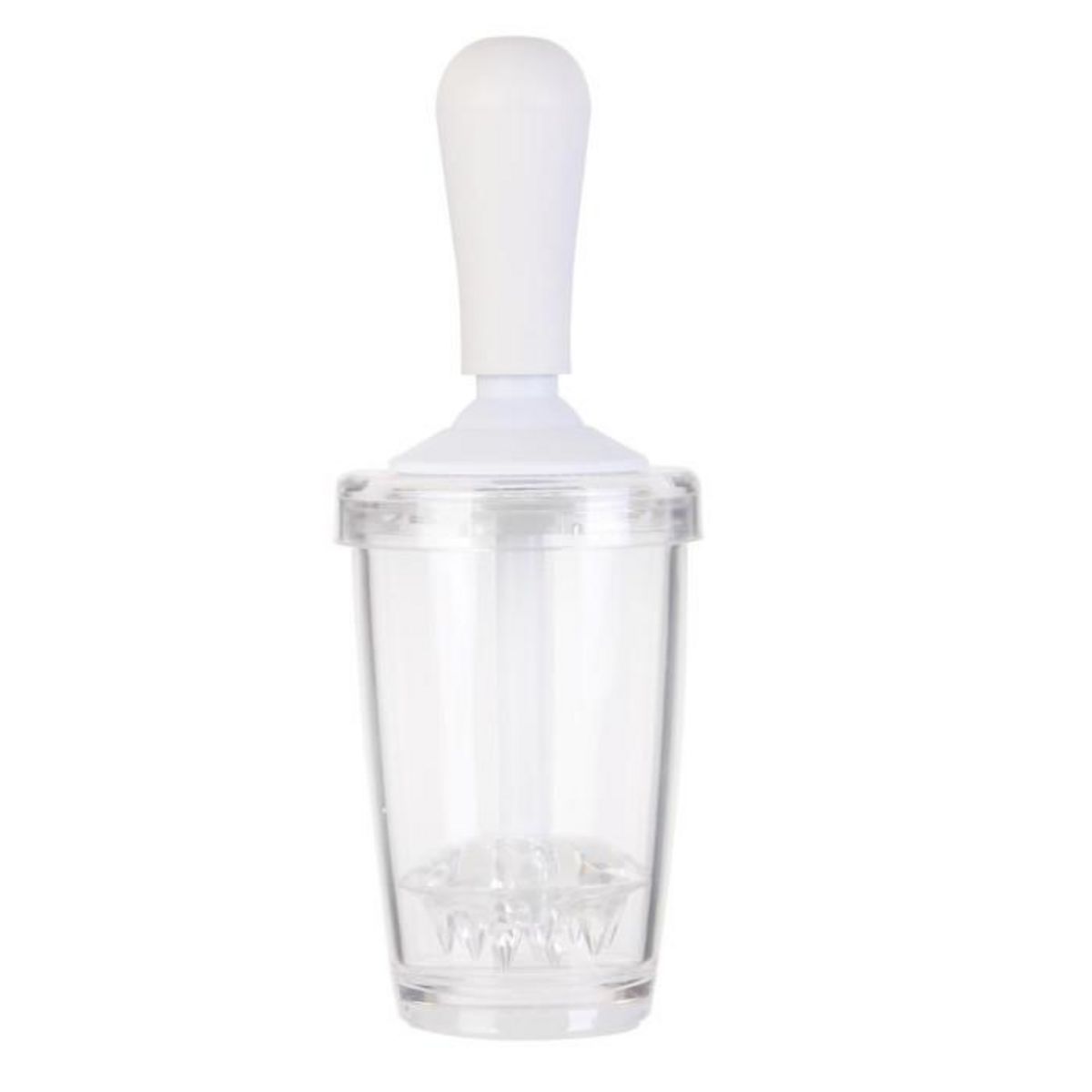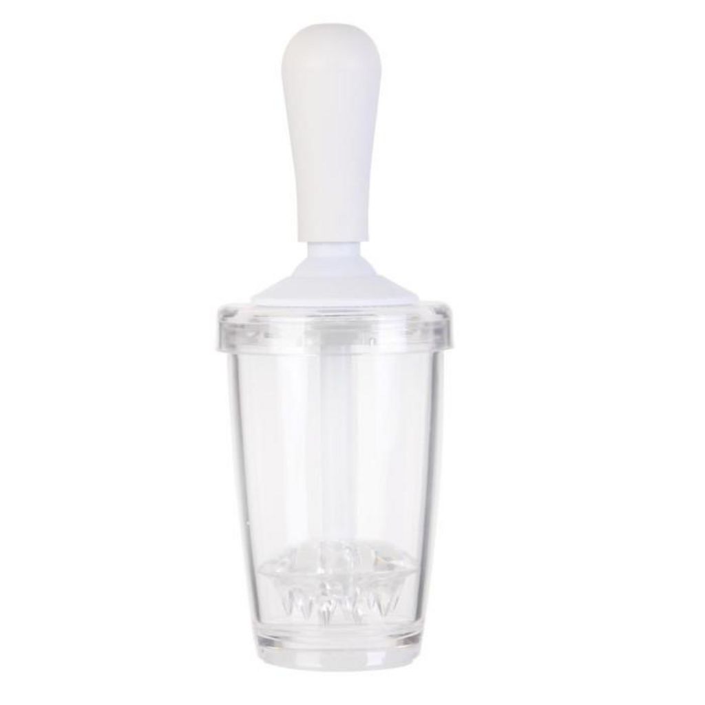 Informations Techniques : Dimensions : L. 8 x l. 8 x H. 20 cm Matières : Plastique & Polypropylène Spécificités : Pratique & Utile Broyeur à Glace Anti-dérapant Manche en Silicone Couleur : Transparent