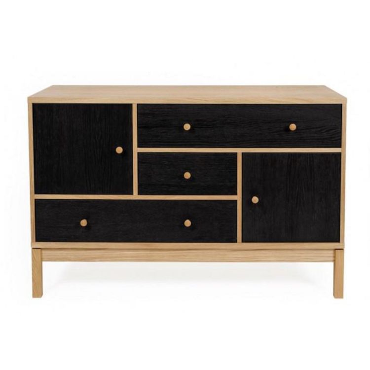 Buffet 2 Portes & 3 Tiroirs AbbeyWood 120cm Chêne & Noir