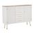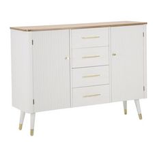 Informations Techniques : Dimensions : L. 117 x l. 37 x H. 90 cm Tiroirs : L. 35 x l. 28 x H. 15 cm Matières : Bois (Pin & Frêne), MDF & Métal Spécificités : Pratique & Robuste Buffet design Avec 2 portes et 4 tiroirs Finitions dorées Poids : 31 kg Couleur : Blanc & Naturel