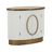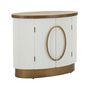 Informations Techniques : Dimensions : L. 79 x l. 48 x H. 67 cm Matières : MDF, Bois (Frêne) & Métal Spécificités : Pratique & Robuste Buffet Ovale Design Avec 2 portes et 1 étagère intérieur Forme arrondie Effet côtelé Poids : 21,38 kg Couleur : Blanc & Naturel