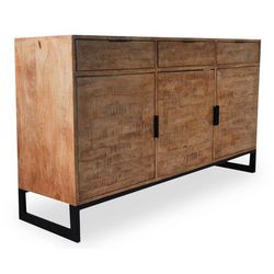 Informations Techniques : Dimensions : L. 150 x P. 40 x H. 81 cm Matière : MDF Spécificités : Moderne & Tendance Buffet design Contient 3 portes battantes & 3 tiroirs Livré non monté Nombre de colis : 1 Poids : 65,5 kg Couleur : Naturel
