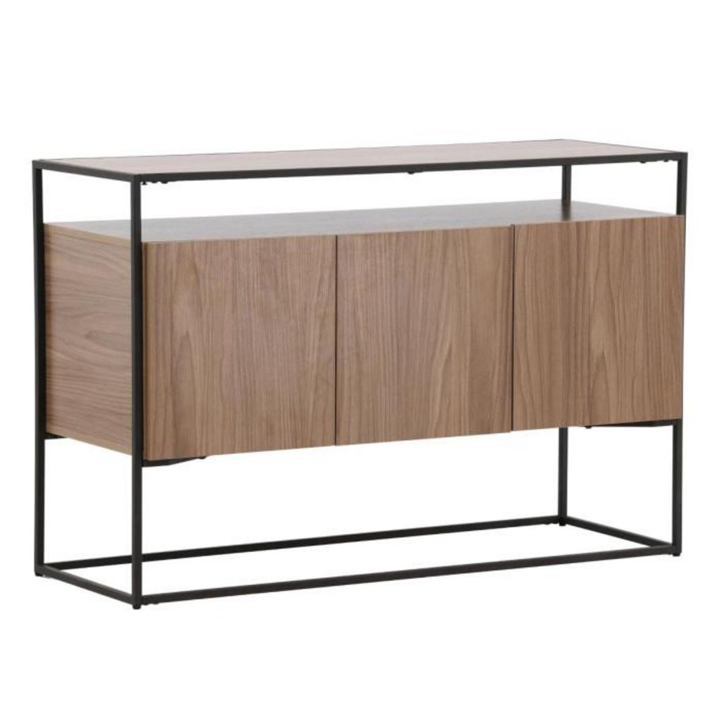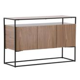Informations Techniques : Dimensions : L. 120 x l. 45 x H. 80 cm Matières : Bois (Teck) & Acier Spécificités : Moderne & Intemporel Buffet sur pied Avec 3 portes Nombre de colis : 1 Poids max supporté : 30 kg Poids : 39,82 kg Couleur : Marron