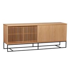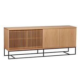 Informations Techniques : Dimensions : L. 188 x l. 45 x H. 75 cm Matières : Corps : Panneaux de particules (Plaqués chêne) Piètement : Métal Spécificités : Design & Fonctionnel Buffet sur pied 4 portes coulissantes Avec étagères Finition laquée mate Forme rectangulaire Poids : 78 kg Couleur : Chêne
