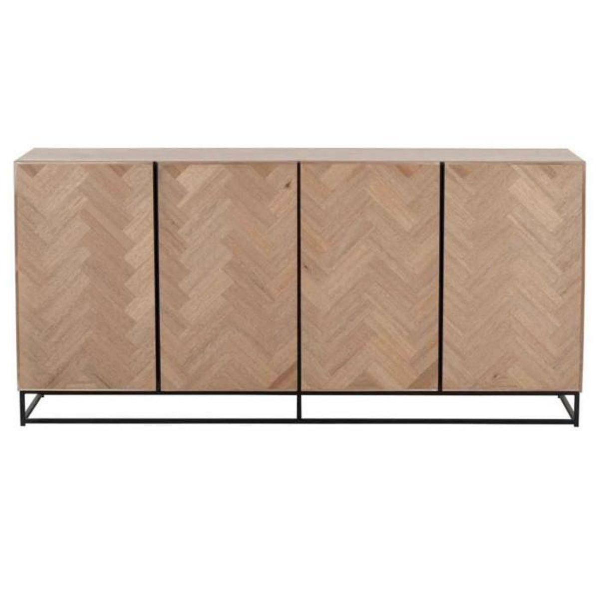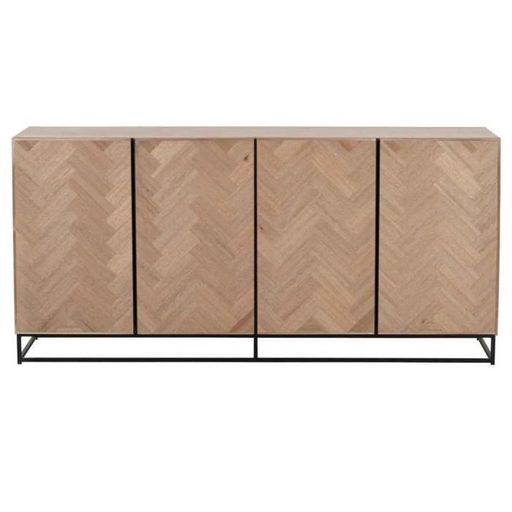 Informations Techniques : Dimensions : L. 180 x l. 42,5 x H. 86,5 cm Matière : Bois & Métal Spécificités : Pratique & Tendance Buffet Design Sur Pied 4 Portes Poids : 50 kg Couleur : Naturel & Noir