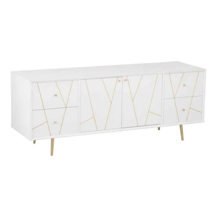 Buffet 4 Tiroirs & 2 Portes Remina 150cm Blanc & Or