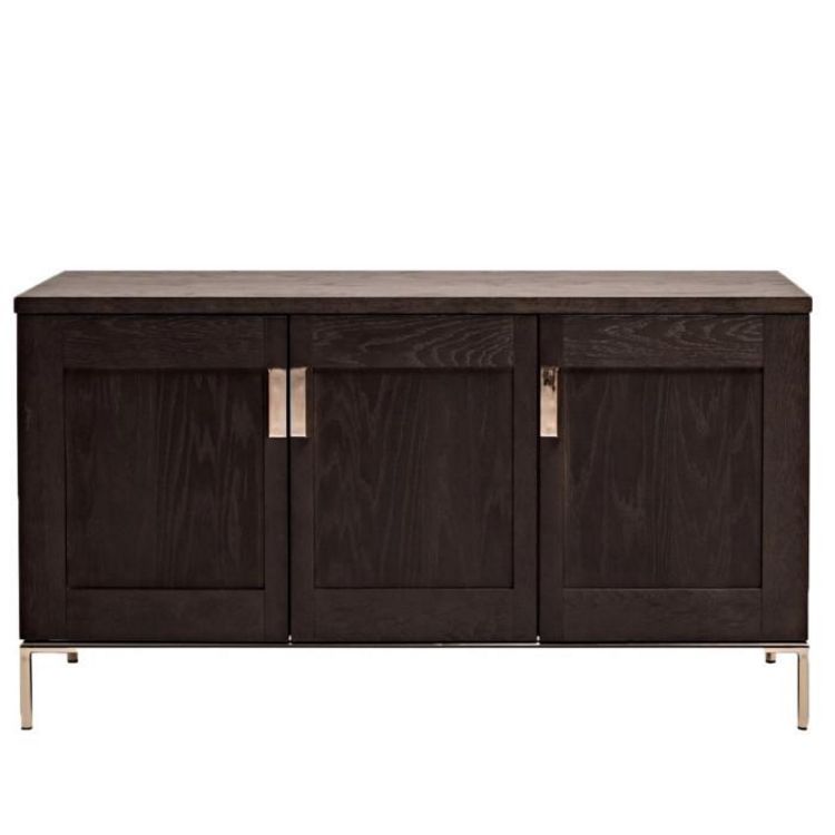 Informations Techniques : Dimensions : L. 150 x P. 44 x H. 75 cm Matières : Portes & Plateau : Panneaux alvéolaires & Placage Chêne & Noyer Piètement : Laiton Les + du produit : 3 Portes Matériaux & Finitions Haut de Gamme Excellente stabilité Designé par Leonhard Pfeifer Créateur : Woodman Fabriqu