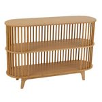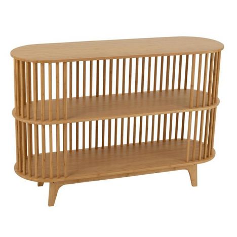 Informations Techniques : Dimensions : L. 120 x l. 37 x H. 82,5 cm Matière : 100% Bambou Spécificités : Tendance & Robuste Buffet ovale sur pied À monter soi-même Poids max supporté : 100 kg Poids : 15,5 kg Couleur : Naturel