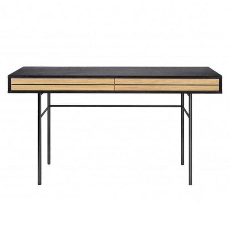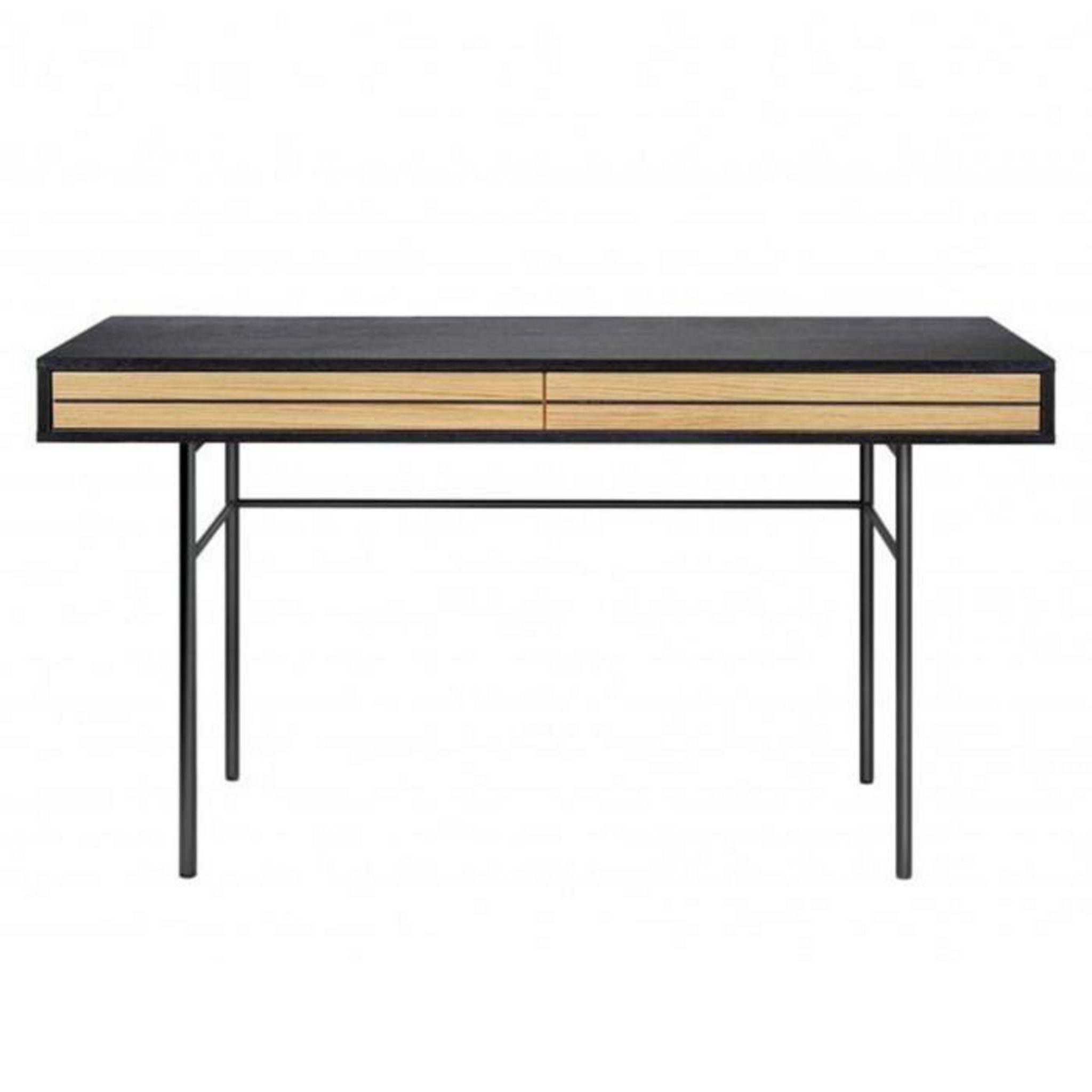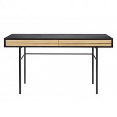 Bureau 2 Tiroirs en Bois Stripe 130cm Chêne & Noir