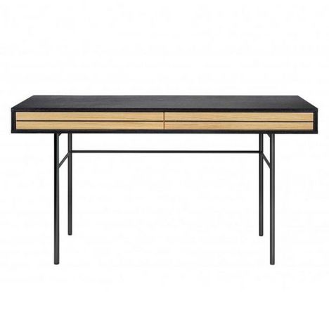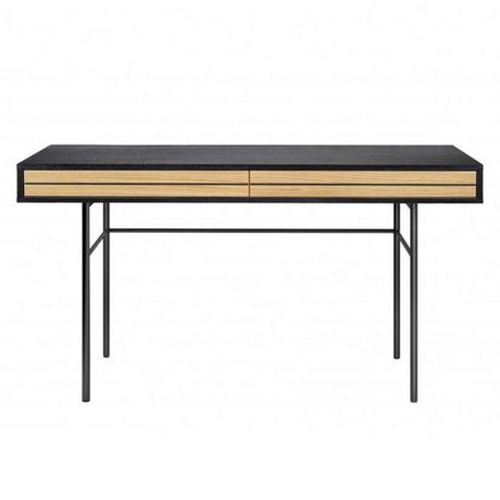 Informations Techniques : Dimensions : L. 130 x l. 60 x H. 75 cm Pieds : H. 63 cm Tiroir : L. 62,9 cm Matières : Plateau : MDF Contreplaqué Chêne Pieds : Métal Les + du produit : 2 Tiroirs Système Push to Open Finition Mat Motif Rayures fraisées Matériaux & Finitions Haut de Gamme Excellente stab