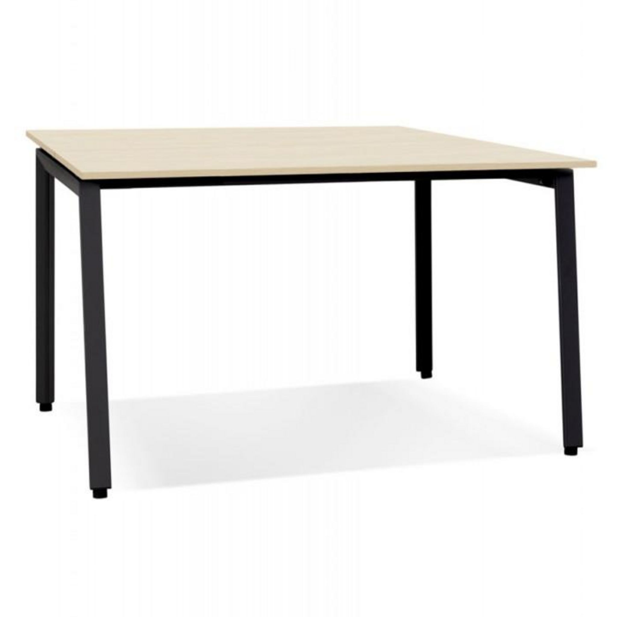 Informations Techniques : Dimensions : L. 160 x l. 160 x H. 74,5 cm Plateau : L. 160 x l. 160 x H. 1,8 cm Matières : Plateau : MDF Structure : Métal Spécificités : Spacieux & Robuste Bureau bench design Avec 2 plateaux Peut servir de table de réunion Bois finition mélaminé naturel Métal thermolaqué