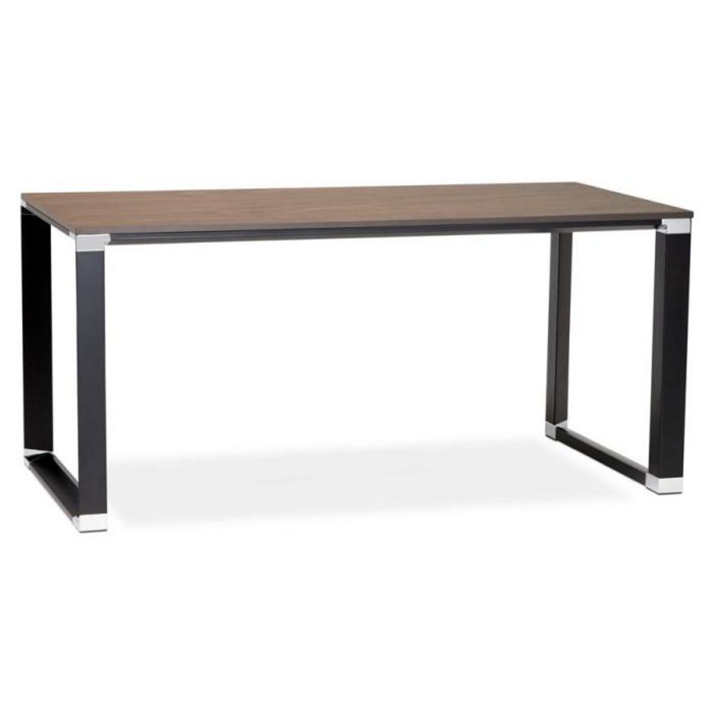 Informations Techniques : Dimensions : L. 160 x l. 80 x H. 74 cm Matières : Tablette : Bois Stucture : Métal Spécificités : Grand bureau moderne Epaisseur de la tablette : 1,8 cm Livré démonté Protection pour les sols inclus Poids : 40 kg Nombre de colis : 2 Couleur : Noyer & Noir
