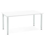 Informations Techniques : Dimensions : L. 160 x l. 80 x H. 75 cm Matières : Bois mélaminé & Métal Spécificités : Patins métalliques réglables de quelque millimètre pour plus de stabilité Pouvant accueillir jusqu'à 6 personnes Poids : 35 kg Couleur : Blanc