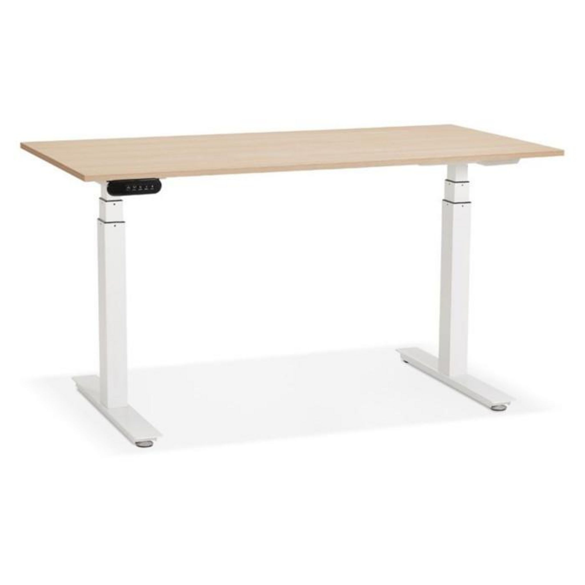 Bureau Design Réglable Électrique 140cm Naturel & Blanc