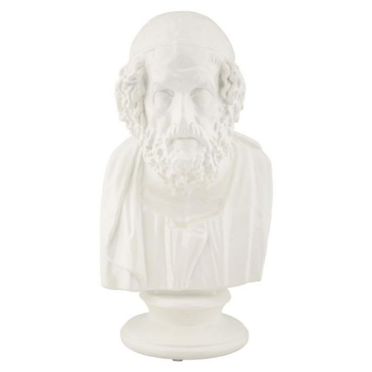 Informations Techniques : Dimensions : L. 12,9 x l. 12,5 x H. 25 cm Matière : Polyrésine Spécificités : Déco & Original Buste homme sage À poser Poids : 0,72 kg Couleur : Blanc