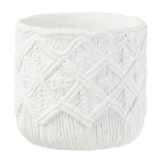 Cache-Pot Déco en Ciment Damier 20cm Blanc