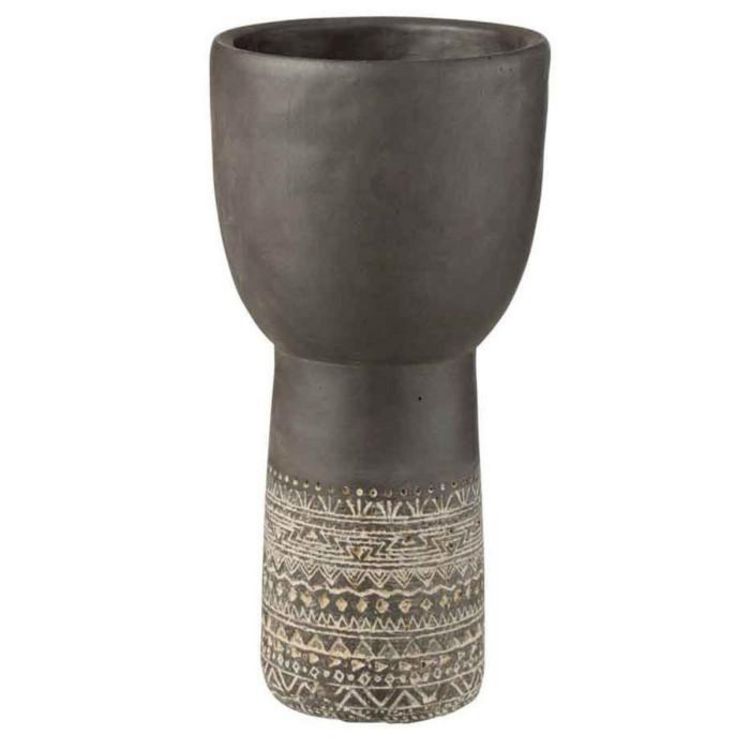 Cache-Pot Déco en Ciment Ethnic 37cm Gris