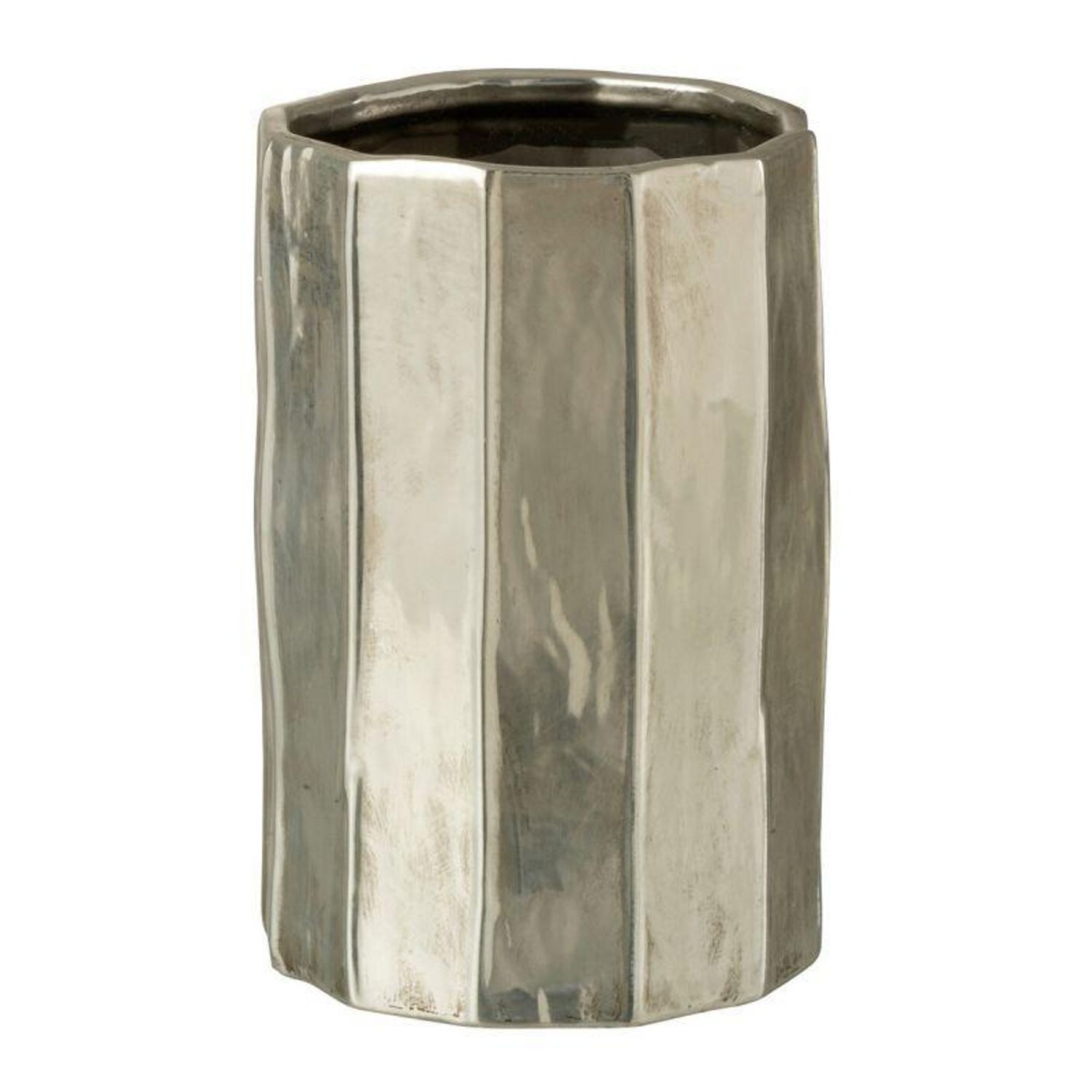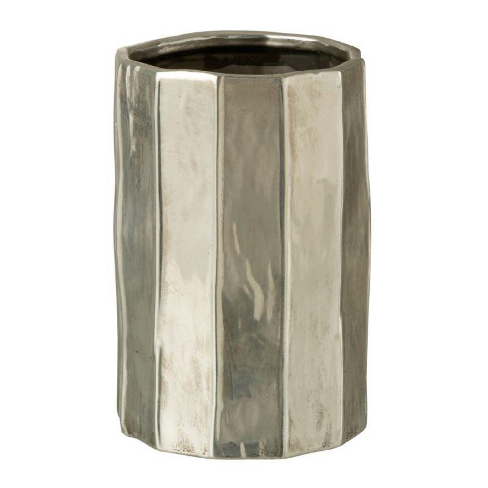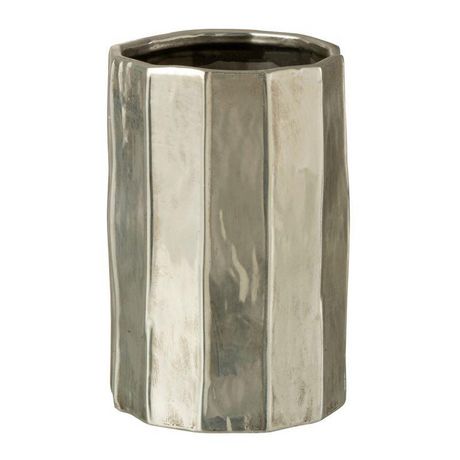 Informations Techniques : Dimensions : D. 16,5 x H. 25,5 cm Matière : Argile Spécificités : Déco & Utile Cache-pot design Forme ronde Vendu à l'unité Poids : 1,61 kg Couleur : Argent