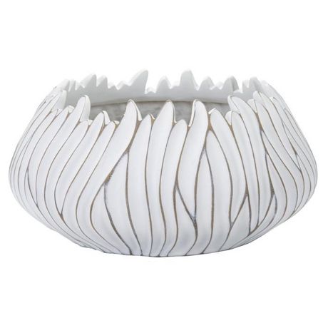Informations Techniques : Dimensions : D. 40 x H. 20 cm Matière : Polyrésine Spécificités : Élégant & Déco Cache-pot rond design Motifs en relief Poids : 2,4 kg Couleur : Blanc