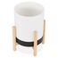 Informations Techniques : Dimensions : D. 16,5 x H. 26-33 cm (en fonction de la position du pied) Matières : Polypropylène & Bois Spécificités : Moderne & Design Cache-pot design Support en bois Le support peut être posé dans les deux sens afin de surélever le pot à des hauteurs différentes Nombre