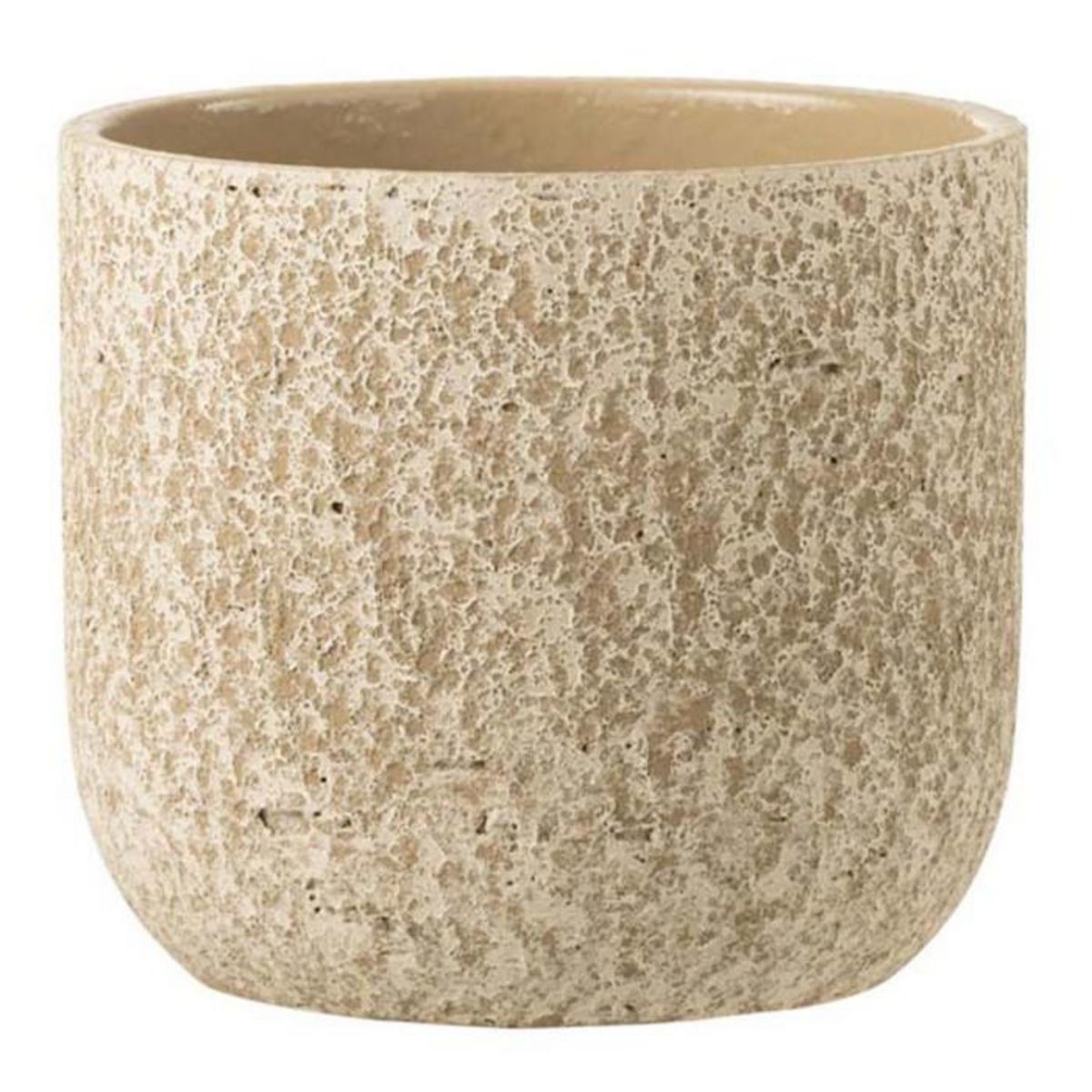 Informations Techniques : Dimensions : D. 22 x H. 20 cm Matière : Céramique Spécificités : Tendance & Pratique Cache-Pot Design Forme Ronde Revêtement Rugueux Couleur : Beige