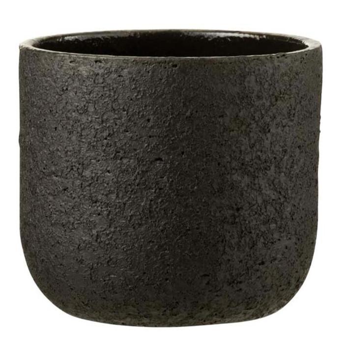 Informations Techniques : Dimensions : D. 22 x H. 20 cm Matière : Céramique Spécificités : Tendance & Pratique Cache-Pot Design Forme Ronde Revêtement Rugueux Couleur : Noir