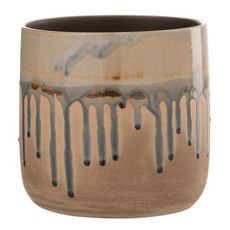 Informations Techniques : Dimensions : D. 18 x H. 18 cm Matière : Céramique Spécificités : Pratique & Utile Cache-Pot Design Forme Ronde Avec Coulures Couleur : Beige & Gris