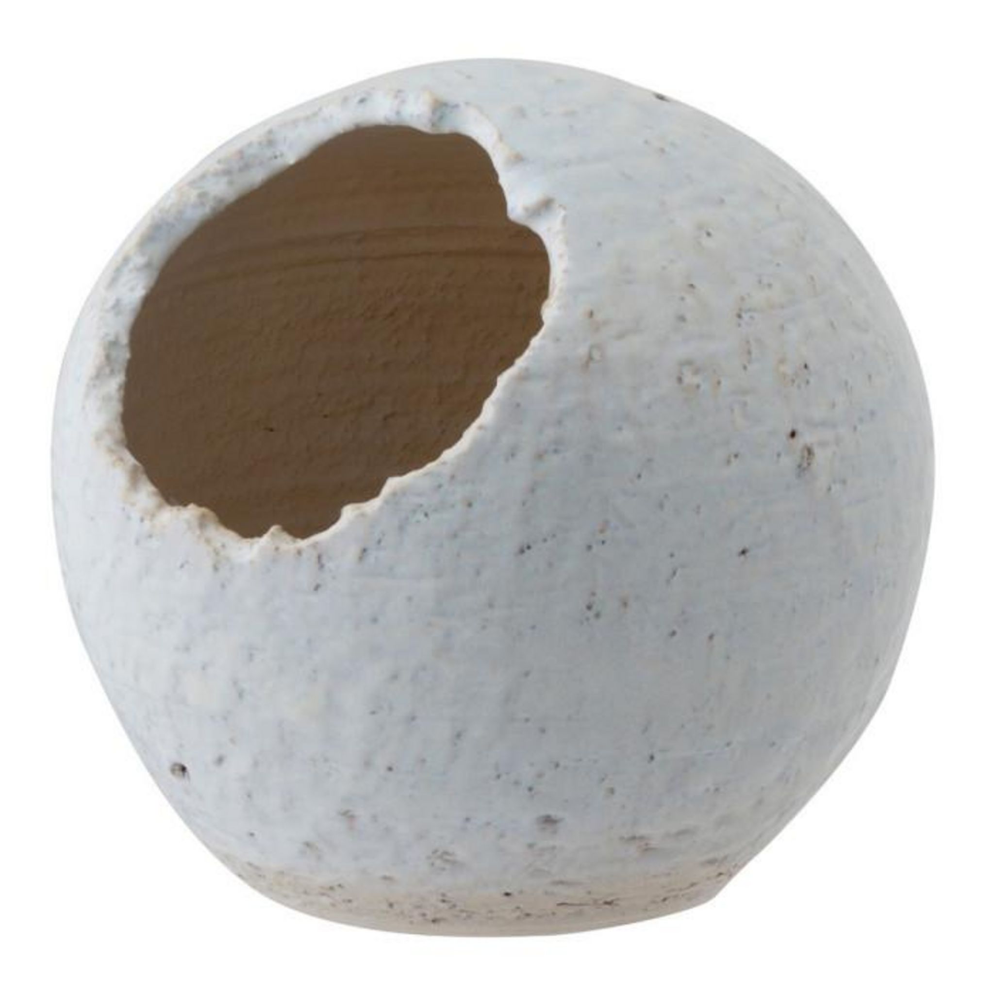 Informations Techniques : Dimensions : L. 24 x l. 23,5 x H. 22 cm Matière : Céramique Spécificités : Déco & Utile Cache-pot oblique Forme ronde Poids : 3,2 kg Couleur : Blanc