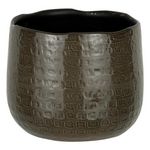 Informations Techniques : Dimensions : L. 19 x l. 22 x H. 18,5 cm Matière : Céramique Spécificités : Tendance & Chic Cache-Pot Design Motifs en Relief Poids : 1,7 kg Couleur : Gris Foncé