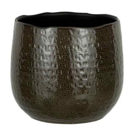 Informations Techniques : Dimensions : L. 24 x l. 26,5 x H. 22 cm Matière : Céramique Spécificités : Tendance & Chic Cache-Pot Design Motifs en Relief Poids : 3,1 kg Couleur : Gris Foncé