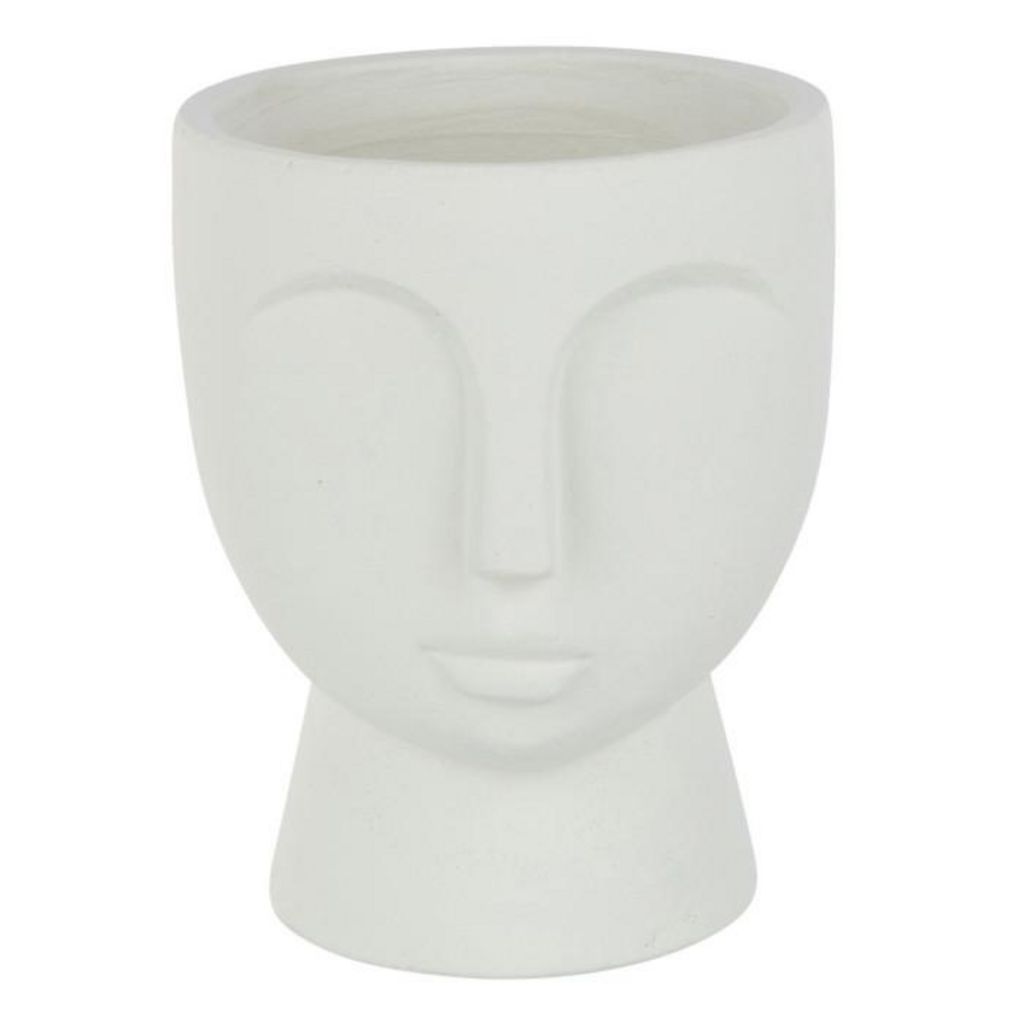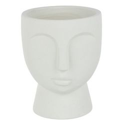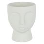 Informations Techniques : Dimensions : L. 18,5 x l. 18 x H. 22 cm Matière : Ciment Spécificités : Moderne & Sobre Cache-pot déco Design visage Poids : 2,91 kg Couleur : Blanc